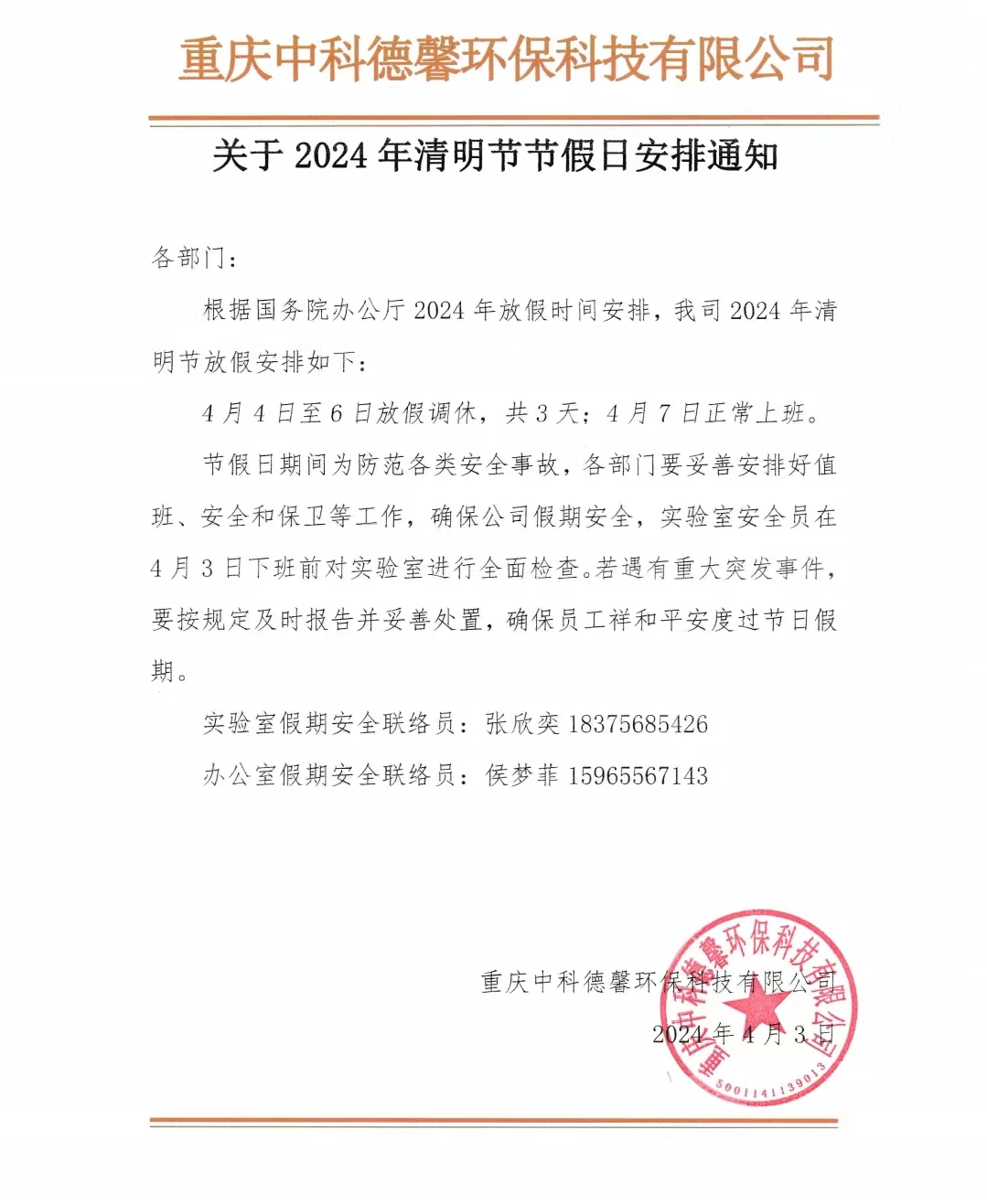 2024年清明節放假通知