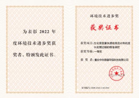 4月13日,2022年度環境技術進步獎頒獎典禮在京舉行,我司參與申報的“生化需氧量快速檢測及對有機廢水處理過程的精準調控”榮獲2022年度環境技術進步獎一等獎,頒獎典禮上我司總經理領取了證書并和相關領導及院士一起合影留念。