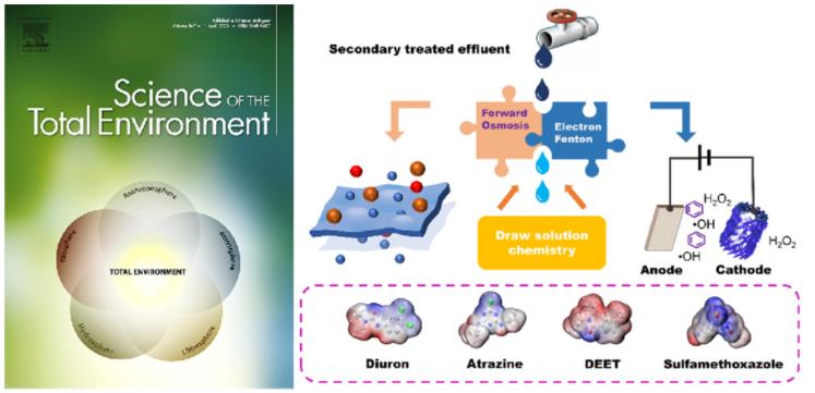 中心成員鄭磊博士在Science of The Total Environment 上發表學術論文“Tailoring the draw solution chemistry in the integrated electro-Fenton and forward osmosis for enhancing emerging contaminants removal: Performance, DFT calculation and degradation pathway”。